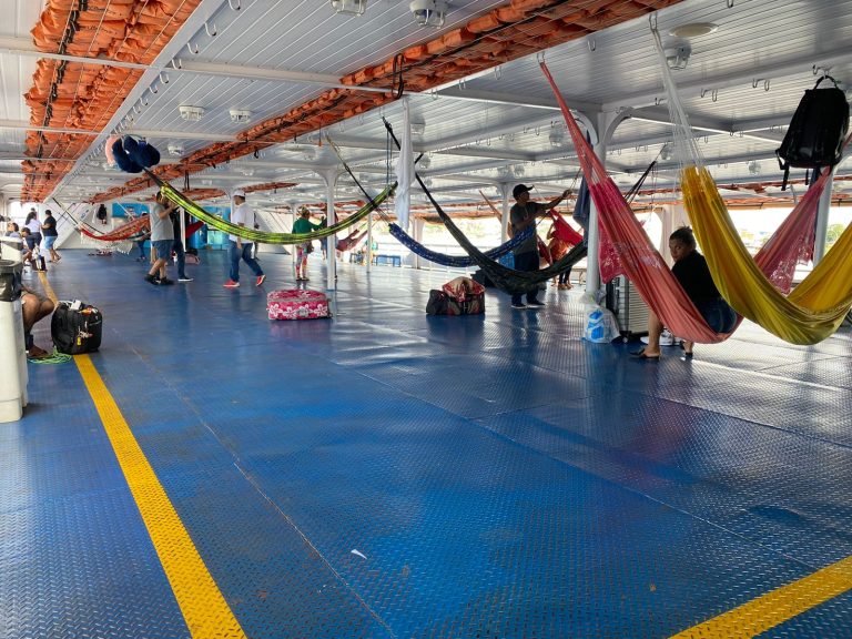 * Passagem de ida e volta em rede no SALÃO CLIMATIZADO. * Inclui café da manhã durante a viagem no trecho Manaus-Parintins e Parintins-Manaus. * Direito ao nosso Kit Exclusivo da viagem, UMA CAMISA e COPO personalizado da nossa viagem, que serão entregues em data programada e informada em nossas redes sociais; * É permitido a hospedagem na embarcação durante o festival no mesmo setor em que destina o pacote (sem direito a alimentação na permanência no porto) * NÃO inclui alimentação no decorrer da viagem, vendida a parte. PROIBIDO A ENTRADA DE BEBIDAS ALCOLICAS E REFRIGERANTES, EXCETO ÁGUA